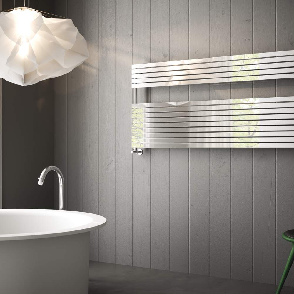 Новый полотенцесушитель Cordivari Fujiko из нержавеющей стали, расширяет возможности сушки широких полотенец и более крупных вещей. Качественная обработка стали украсит ванную комнату своим блеском и элегантностью.