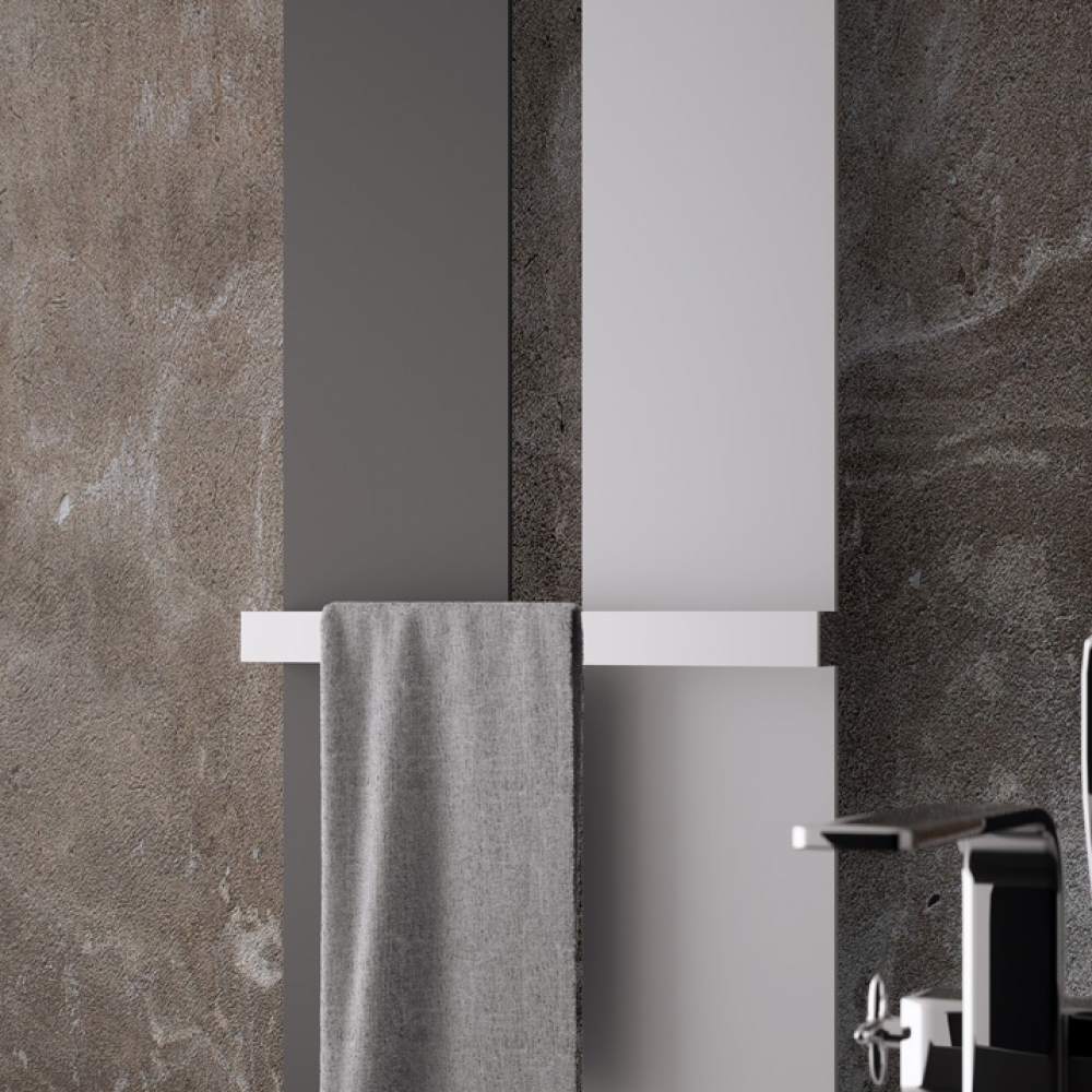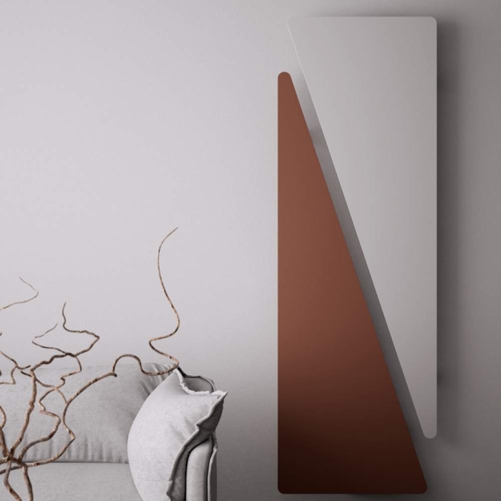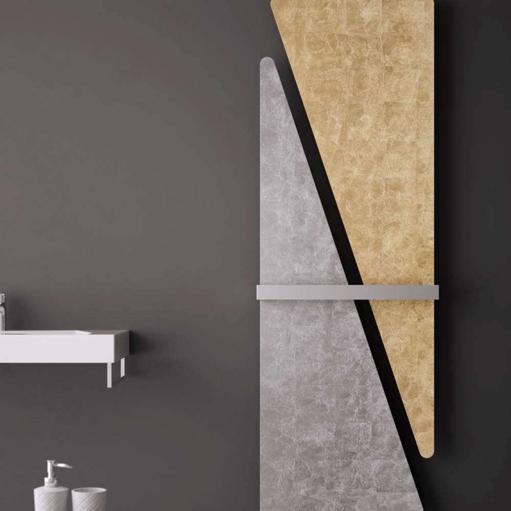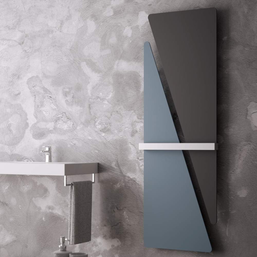 Итальянский дизайн-радиатор Triade составной. Это композиция из двух прямоугольных треугольников которая может быть соединена стальным полотенцедержателем. Для данной модели доступна вся цветовая палитра Hotech. Так же Triade разработан в электрической версии.